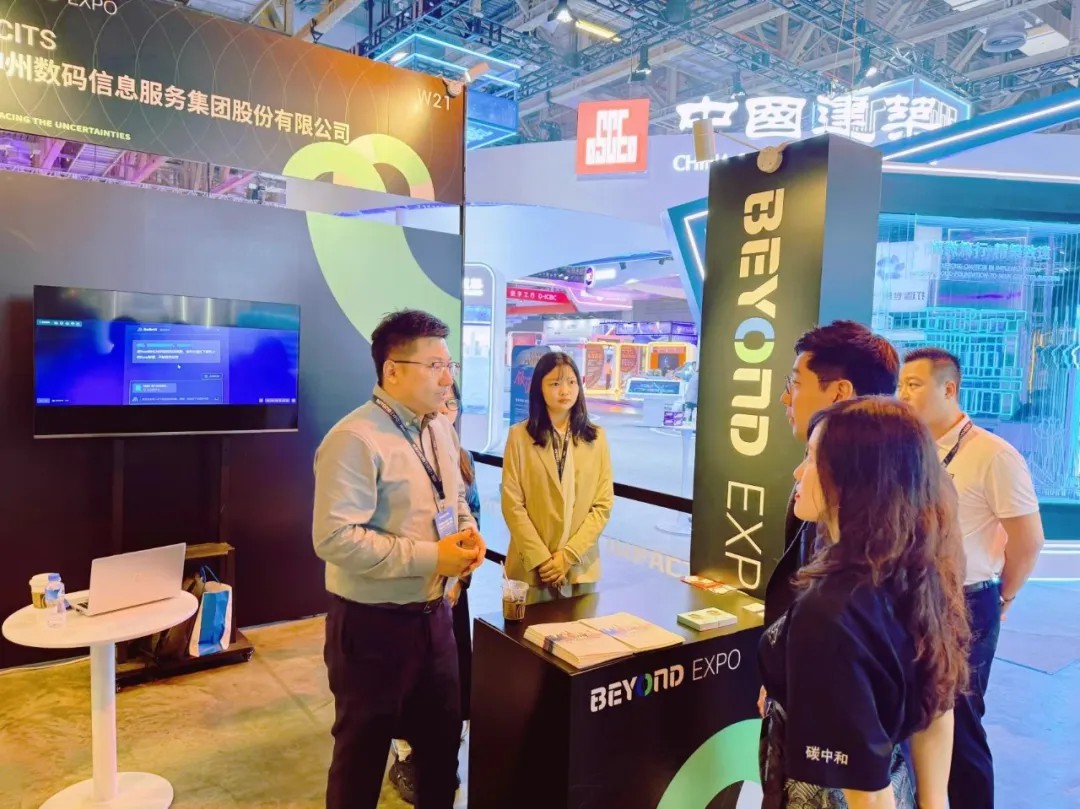 图为神州信息在第四届BEYOND国际科技创新博览会现场进行讲解